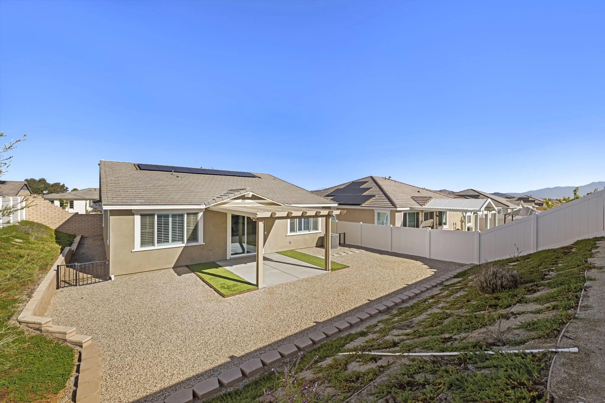 Charming Newer Build in Quartz Ranch, Menifee Welcome to this beautifully maintained single-family home offering 3 bedrooms, 2 full baths, and nearly 1,950 square feet of modern living space. Built in the sought-after Quartz Ranch community, this home features owned solar and numerous upgrades throughout — including designer lighting, custom blinds, and professionally designed landscaping. Enjoy a spacious open-concept layout perfect for entertaining and everyday living. A model match recently sold for $624,000, making this a fantastic opportunity! First showings will be at the open house — don’t miss it!